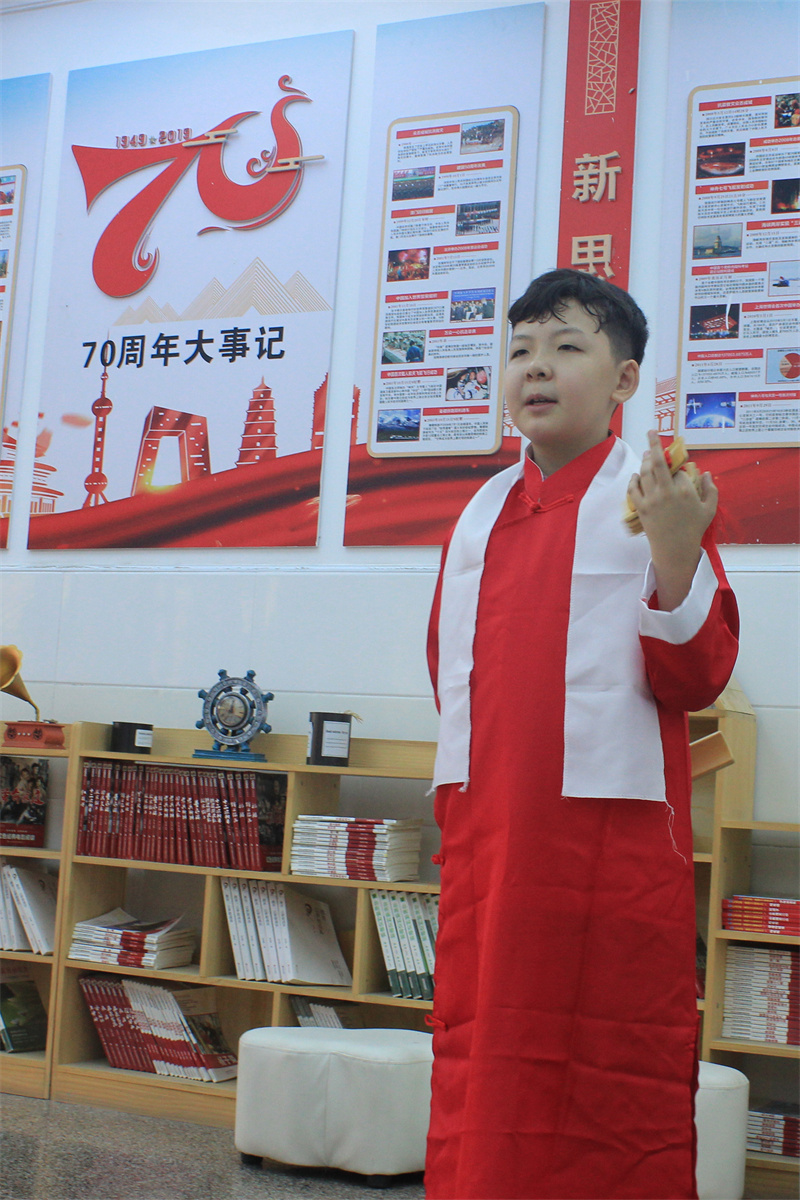 王熙昊學(xué)習(xí)快板已有五年,這個活潑認(rèn)真的小男孩從小就喜歡聽革命先輩們的英雄故事。“我喜歡快板,也喜歡聽黨的故事,希望通過快板這種形式和同學(xué)們一起感受革命先輩的偉大精神。”