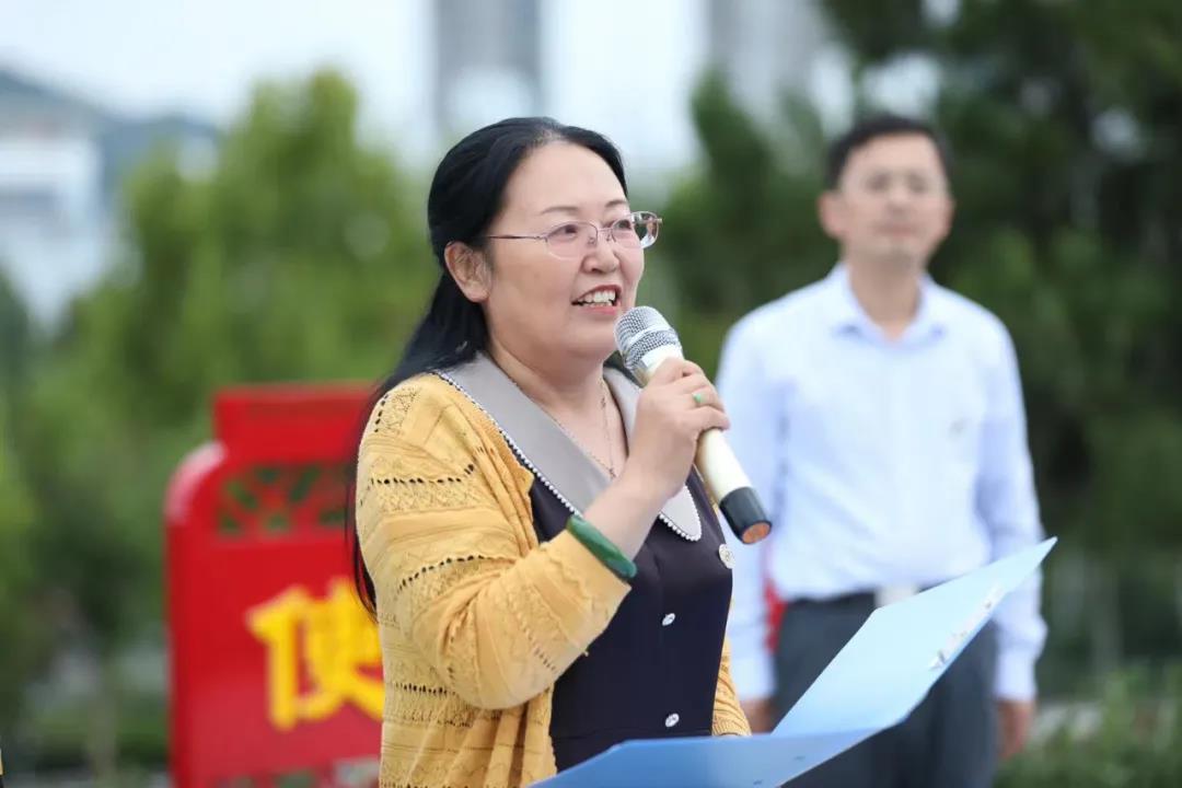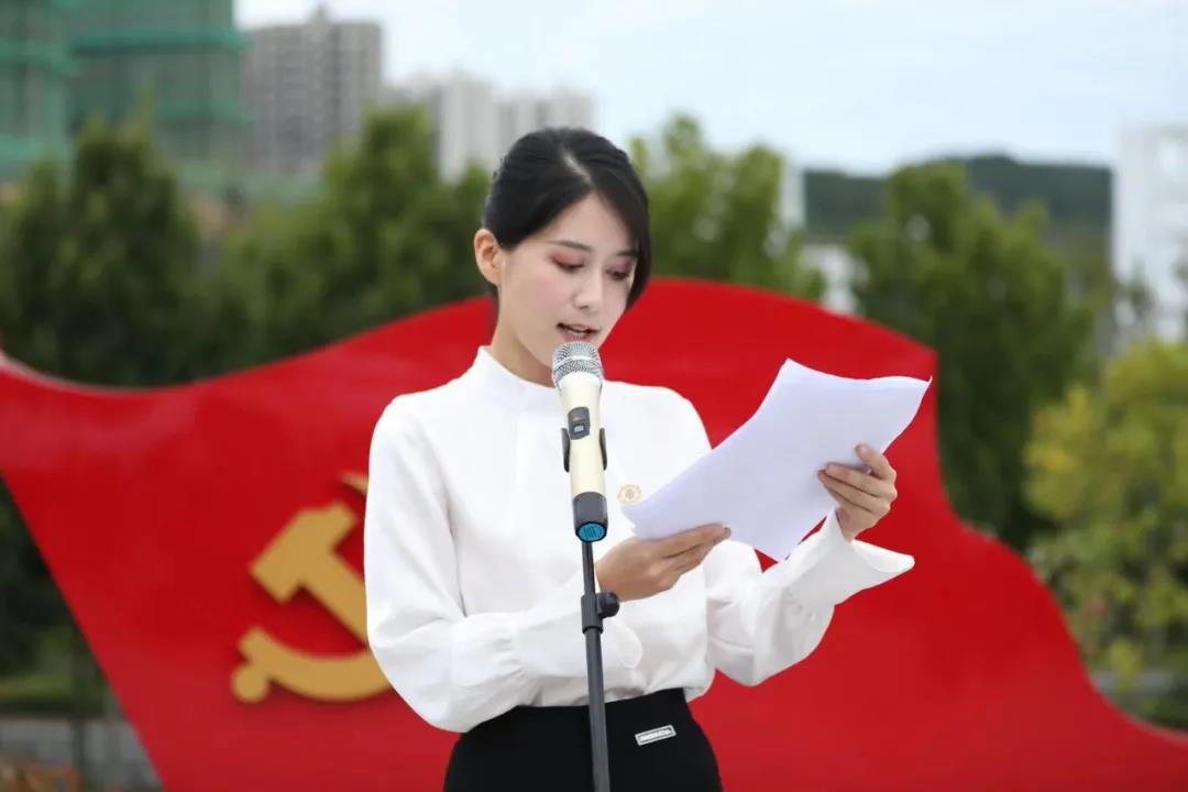 學(xué)校優(yōu)秀教師代表,馬克思主義學(xué)院教師劉鎖霞領(lǐng)誓。全體新入職教師舉起右手面對國旗和校旗莊嚴(yán)宣誓,志愿做一名光榮的人民教師,對黨和人民的教育事業(yè)進(jìn)行了莊嚴(yán)承諾。