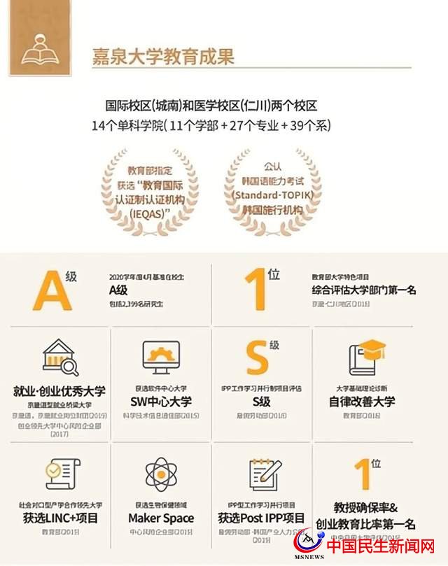 2012年由暻園大學、嘉泉醫(yī)科大學等4所大學合并更名為嘉泉大學。被韓國教育部納入有“韓國985”之稱的BK21工程、韓國未來規(guī)劃部選定的SW中心大學。