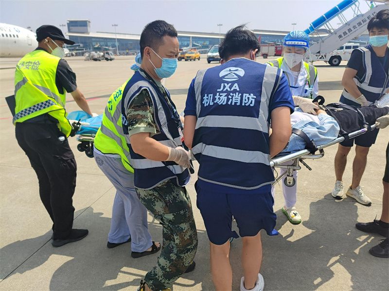 10點57分,航班安全降落在南昌機場。早已在此等候的醫(yī)護人員迅速上機救助,青島航空地面服務部南昌工作人員配合醫(yī)護人員將旅客抬下飛機,陪同家屬搭乘急救車前往醫(yī)院。據(jù)最新消息,經(jīng)醫(yī)院治療后,該名旅客目前已脫離危險,身體狀況穩(wěn)定。