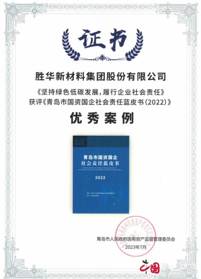 其中,經(jīng)控集團(tuán)申報(bào)的勝華新材料集團(tuán)股份有限公司《堅(jiān)持綠色低碳發(fā)展,履行企業(yè)社會(huì)責(zé)任》獲評(píng)《青島市國(guó)資國(guó)企社會(huì)責(zé)任藍(lán)皮書(shū)(2022)》“綠色低碳發(fā)展篇”優(yōu)秀案例。這是經(jīng)控集團(tuán)及所屬企業(yè)繼獲評(píng)2022山東社會(huì)責(zé)任企業(yè)以來(lái),在踐行社會(huì)責(zé)任領(lǐng)域獲得的又一殊榮。