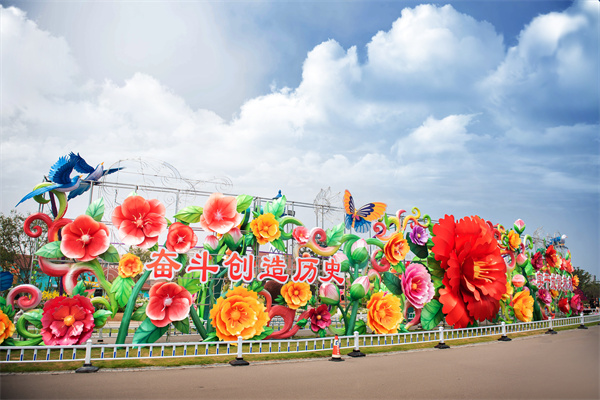 白天暢游花海,夜晚賞盡彩燈。金沙灘啤酒城還引入47組自貢彩燈,融合百年黨史、民俗非遺、城市特色和啤酒文化、海洋文化、哈舅IP等元素,打造百余個(gè)彩燈造型,點(diǎn)亮不夜啤酒城。