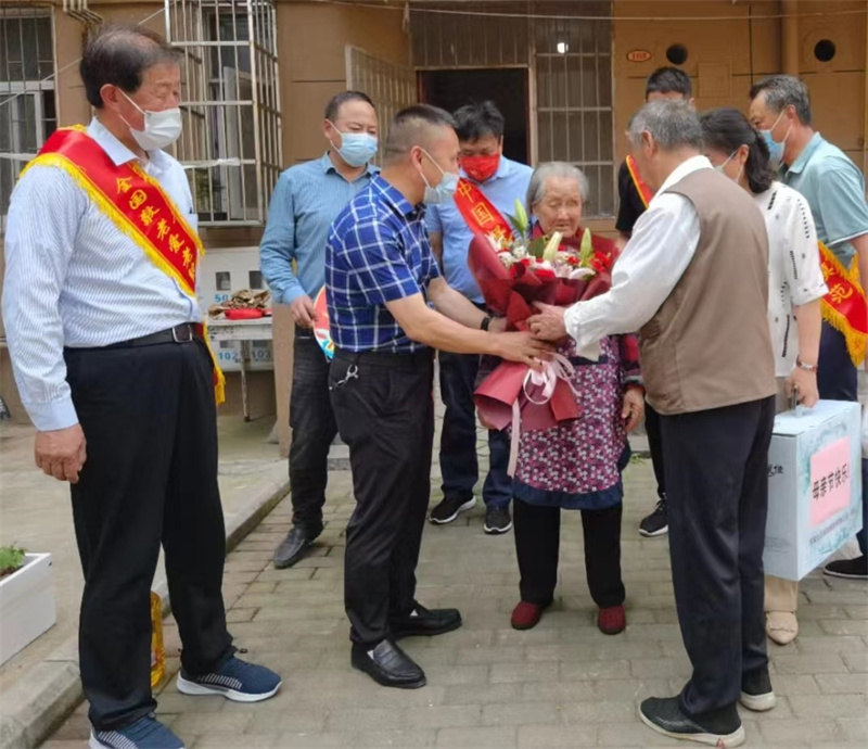 項(xiàng)五九(左三)、王志祥(左一)等看望慰問(wèn)社區(qū)百歲老人