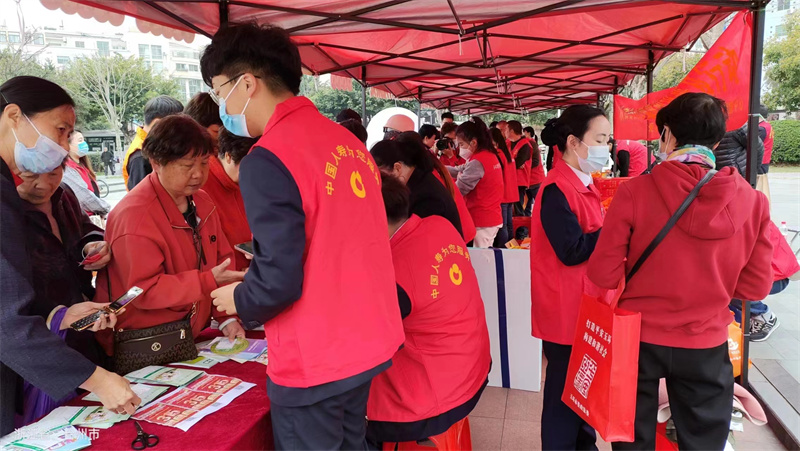 圖:向市民宣講普惠保險業(yè)務政策利好