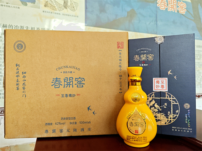 前些年隨著山東芝麻香白酒的異軍突起,馮金國(guó)抓住時(shí)機(jī),適時(shí)推出了春開窖“冬醞136”高端芝麻香白酒。該產(chǎn)品以發(fā)酵周期136天以上的芝麻香酒為基酒,在地下酒窖內(nèi)經(jīng)過2年以上的存儲(chǔ),按照獨(dú)特配方勾調(diào)出成品酒。香氣突出、醇香濃郁、綿甜爽凈,具備了初品焦香、回味醇香、潤(rùn)舌濃香、余味醬香的突出特點(diǎn)。春開窖新推出的兩款冬醞136芝麻香白酒分別為62度和68度。包裝采用葫蘆(福祿)造型的陶瓷瓶,流光溢彩、典雅別致。各界人士對(duì)“冬醞136”高端芝麻香白酒,從酒質(zhì)到包裝都給予了高度評(píng)價(jià)。