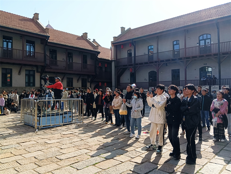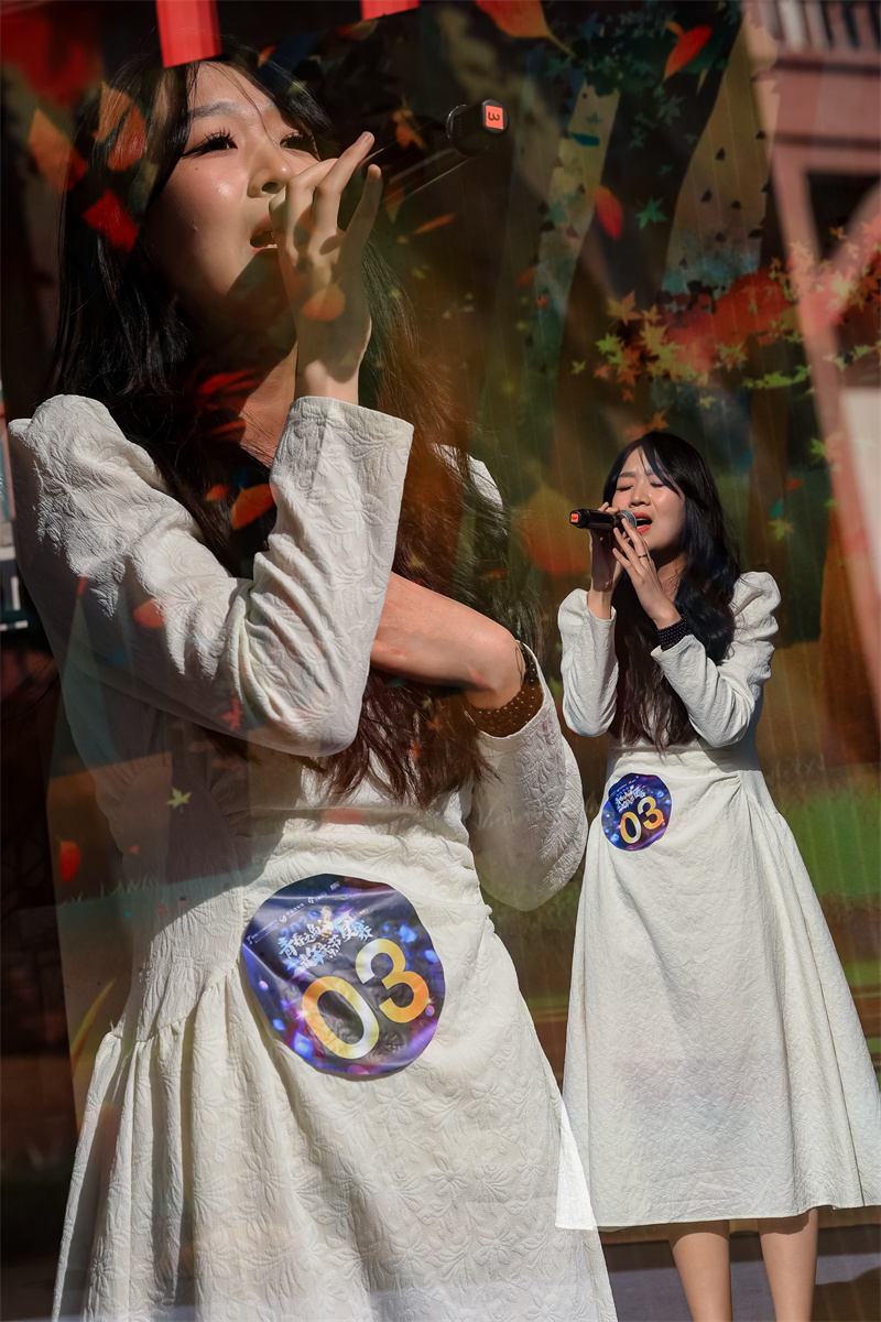 下午1時(shí)30分,音樂節(jié)復(fù)賽正式開啟。優(yōu)美的旋律,嘹亮的歌聲,活動一開始就吸引大批在廣興里游玩的市民旅客駐足觀看。駐青高校的學(xué)子們唱著《如愿》《倔強(qiáng)》《飄向遠(yuǎn)方》等一首首耳熟能詳?shù)母枨?,直抵人心的旋律和快樂自由的氛圍?shù)次引起了現(xiàn)場觀眾歡呼鼓掌。在現(xiàn)場觀眾中,有各高校選手們自帶的后援加油團(tuán),有跟著大人前來湊熱鬧的小朋友,還有很多聞聲而來的年輕人。來往的觀眾時(shí)而揮動雙臂,跟著音樂的節(jié)奏輕輕搖擺;時(shí)而舉起手機(jī)來回拍攝,記錄下參賽選手們的精彩瞬間。