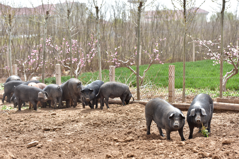 在農(nóng)場里,一頭頭黑豬悠然踱步于果林間,而它們的排泄物則通過發(fā)酵處理,轉(zhuǎn)化為滋養(yǎng)千畝農(nóng)田的有機肥料。"莊稼一枝花,全靠肥當家。"韓女士指著長勢喜人的玉米田介紹,農(nóng)場構(gòu)建起"豬-肥-糧-禽"閉環(huán)生態(tài)鏈:黑豬糞肥種植飼草,飼草喂養(yǎng)雞鴨鵝,禽蛋產(chǎn)品再反哺市場,形成年產(chǎn)值超800萬元的立體農(nóng)業(yè)體系。這種"零污染、零排放"模式不僅獲評青島市生態(tài)循環(huán)農(nóng)業(yè)示范基地,更吸引周邊30余戶農(nóng)民加入合作社,帶動年增收2萬余元。