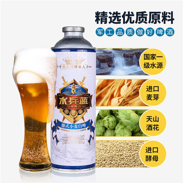 離開部隊,心中依然割舍不下軍旅生活。到了地方后,他進行了創(chuàng)業(yè),心中一直有個藍色的心結在他心頭跳躍,他決定注冊一個與軍人相關的產(chǎn)品,來延續(xù)他對軍營的熱愛。特別是習主席提出“讓軍人成為全社會最尊崇的職業(yè)”號召后,青島市退伍軍人事務局也推出了“榮軍卡”及軍人創(chuàng)業(yè)的扶持政策,并成立了榮軍聯(lián)盟,進一步發(fā)揚擁軍惠軍的優(yōu)良傳統(tǒng)。經(jīng)過深思熟慮,他決定以“水兵藍”為名字做一款精釀啤酒,來彌補他心中的缺憾。