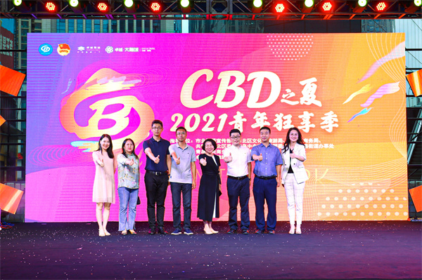儀式現(xiàn)場,市北區(qū)委宣傳部、市北區(qū)文化和旅游局、市北區(qū)商務(wù)局、共青團市北區(qū)委、中央商務(wù)區(qū)管委會、敦化路街道、中央商務(wù)區(qū)商業(yè)聯(lián)盟、卓越大融城有關(guān)負責(zé)同志,一同上臺見證第四屆“CBD之夏·2021青年狂享季”的啟幕。