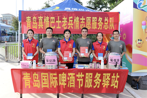 在青島火車站、西客站等主要公交樞紐站,都能看見身著刺繡五角星紅色旗袍的真情巴士客服志愿者,他們?yōu)榘朔接慰吞峁┚€路咨詢、出游指導等服務。在啤酒節(jié)城周邊,可以看到身著不同顏色的馬甲的真情巴士志愿者,21個團隊的稱呼雖然各有不同,但是他們都有一個共同名字—“聚真情”志愿服務聯盟。