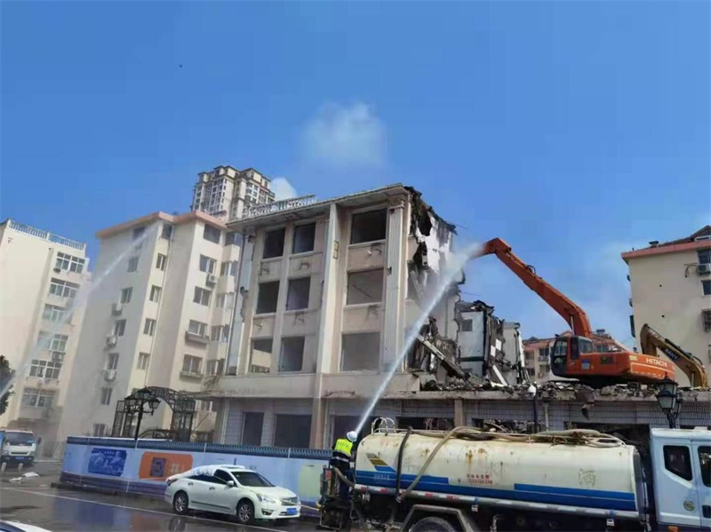 除此之外,城建局協(xié)調(diào)地鐵4號(hào)線公司與周邊居民進(jìn)行了良好溝通,得到了居民對(duì)地鐵建設(shè)工作的理解和支持,在拆除全過程實(shí)現(xiàn)了居民“零投訴”,真正將實(shí)事辦好。在拆除過程中,因拆除房屋緊鄰周邊居民樓,為確保群眾安全,現(xiàn)場(chǎng)搭建了防護(hù)棚方便居民安全通行,同時(shí)設(shè)置圍擋、警戒線進(jìn)行封閉管理,增設(shè)鋼板對(duì)地面及市政井蓋進(jìn)行防護(hù),監(jiān)理負(fù)責(zé)人全程旁站,指導(dǎo)施工單位嚴(yán)格按照施工方案安全拆除;施工過程中也嚴(yán)格做好生態(tài)環(huán)保工作,拆除現(xiàn)場(chǎng)配備4輛灑水車,不間斷的進(jìn)行灑水降塵,減少揚(yáng)塵污染。