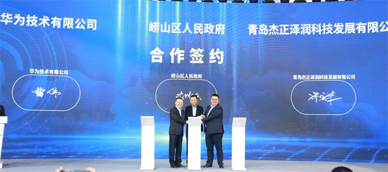 嶗山區(qū)政府分別與華為技術(shù)有限公司、青島杰正澤潤(rùn)科技發(fā)展有限公司、黃河科技集團(tuán)信息產(chǎn)業(yè)發(fā)展有限公司三家企業(yè)舉行合作簽約。