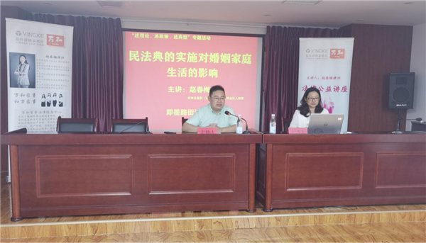 北京市盈科(青島)律師事務所合伙人律師趙春梅以《民法典的實施對婚姻家庭生活的影響》為題,從民法典全貌、總則編解讀、民法典的貫徹實施三個方面進行解讀。在簡要介紹民法典總則編概況、總則編與民法總則、民法通則的關系以及總則編的修訂和要點內(nèi)容等問題的基礎上,在涉及物權、婚姻、繼承等方面,深入淺出地闡釋了民法典的中國特色、實踐特色和時代特色。通過文字、圖片、視頻等靈活生動的方式,對個人信息保護、離婚冷靜期、夫妻共同債務等社會熱點問題進行了解讀。通過宣講,讓大家對民法典的框架、基本內(nèi)容、立法精神及重要意義等有了一定的了解,受到大家的肯定與好評。