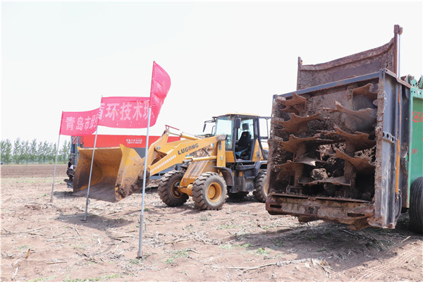 在山東渥田寶生物科技有限公司有機(jī)肥加工生產(chǎn)現(xiàn)場,與會人員觀摩了糞污收集流程,公司專門為養(yǎng)殖企業(yè)提供畜禽糞污處理服務(wù),通過參與綠色種養(yǎng)循環(huán)農(nóng)業(yè)試點(diǎn)項(xiàng)目,為項(xiàng)目區(qū)178家農(nóng)戶、3.5萬畝耕地,免費(fèi)提供了1.6萬方優(yōu)質(zhì)糞肥,有效提升了土壤肥力。在萊西金豐公社的種植基地,與會人員觀摩了機(jī)械撒施糞肥還田作業(yè)過程。據(jù)金豐公社負(fù)責(zé)人介紹, 近兩年連續(xù)使用有機(jī)肥不僅節(jié)省了購買化肥費(fèi)用,耕地地力也得到了改善,糧食產(chǎn)量明顯提高。