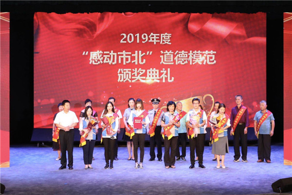 如果說青島市道德模范與抗疫先鋒故事匯巡演--市北專場大型公益活動贏得了現(xiàn)場所有人的熱烈掌聲,那么依次走上舞臺接受褒揚的2019年度市北區(qū)道德模范10名個人、1個集體代表的感人事跡,則感動著現(xiàn)場的每一個人。青島市文明辦副主任陳學(xué)明,市北區(qū)委常委、宣傳部部長王艷,現(xiàn)場為獲得2019年度“感動市北”道德模范獎的團隊及個人頒發(fā)榮譽證書,并表示祝賀。