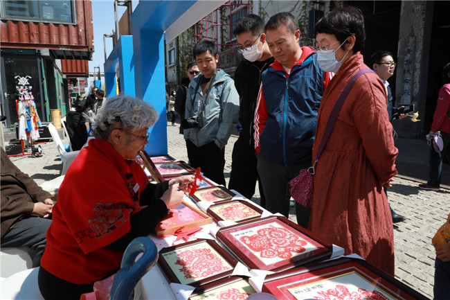 同期,在青島紡織谷國(guó)棉大道上的文化市集,也匯聚了眾多市北區(qū)民俗記憶和潮流文化,紅艷欲滴的糖球,精美絕倫的木版畫(huà),活靈活現(xiàn)的泥塑,鮮艷奪目的布老虎,還有獨(dú)具特色的手工藝品,甚至科技感十足的電競(jìng)比賽展示……人們?cè)诓煌刮磺榜v足,精美的展品也攜帶著一個(gè)個(gè)精美的故事映入眼簾,文化市北的底蘊(yùn)與傳承已在人們的心中蔓延開(kāi)來(lái)。