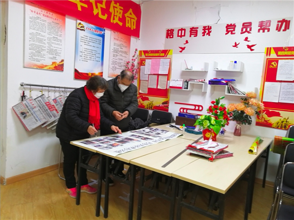 在遼寧路街道鐵山路社區(qū)第三網(wǎng)格黨群服務(wù)站,網(wǎng)格幫辦員趙滿(mǎn)堂正在制作一塊宣傳展板。社區(qū)的好人好事都能在這些手工制作的宣傳展板上得到很及時(shí)的宣傳和反饋,居民們很喜歡。