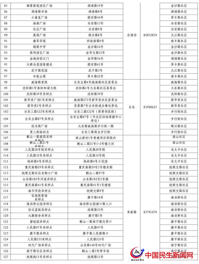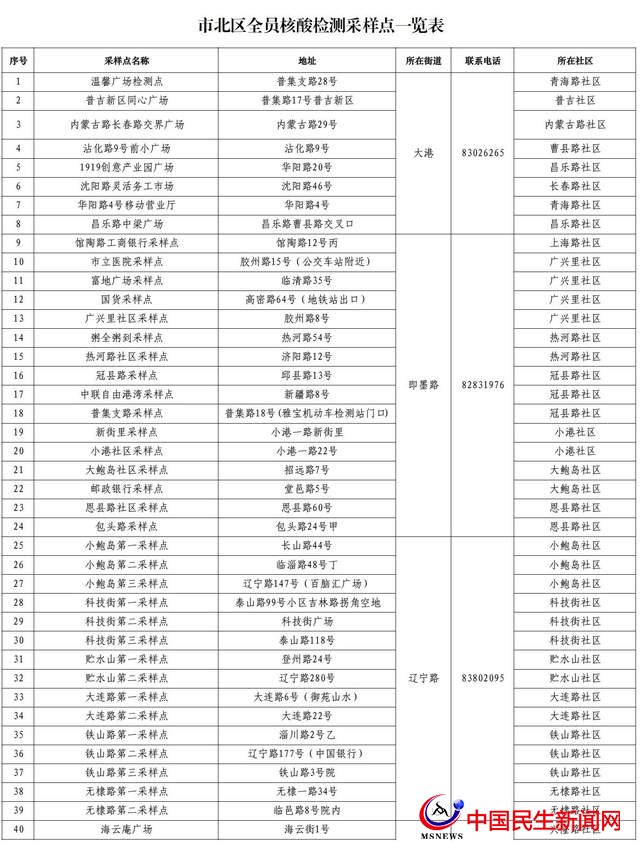 市北區(qū)核酸檢測(cè)采樣點(diǎn)一覽表