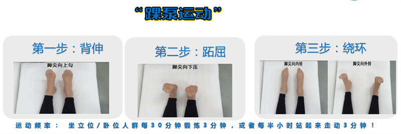 ◆踝泵運動是絕大多數(shù)人群都可以學習掌握并行之有效的VTE預防方法。具體運動方法如下: