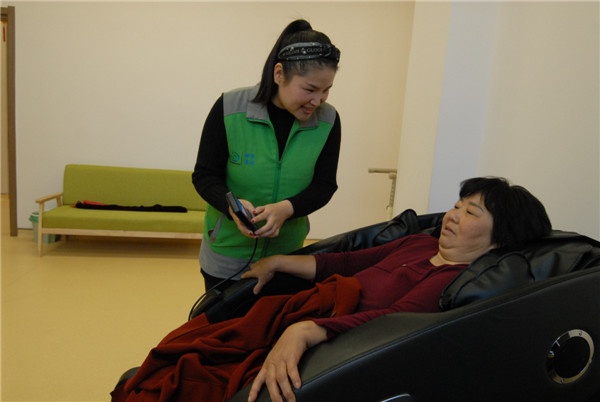 中心內(nèi)設(shè)日托間、中醫(yī)館、康復(fù)訓(xùn)練室、孝親大講堂、理發(fā)室、書畫室、助老澡堂、棋牌室和助老食堂等功能區(qū)。此外,還就近招聘護(hù)理員,為80周歲以上的老年人和失智失能群體提供不同類型的醫(yī)護(hù)上門服務(wù),如按摩推拿、緊急救助、精神慰藉等。