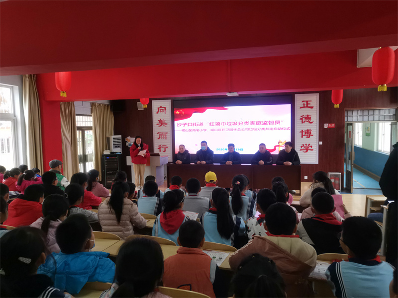 垃圾分類緊緊圍繞一個“乘”字,校企合力助推垃圾分類培訓宣傳活動事半功倍,產生“1×N”效果。針對垃圾分類督導員在督導工作中發(fā)現(xiàn)個別居民不主動分類的情況,為促進垃圾分類工作更好更快落實落地、營造全民參與垃圾分類的氛圍,更好地推進學史力行,公司黨委結合垃圾分類工作實際情況,獨辟蹊徑,創(chuàng)新工作方式,提出孩子帶動家庭、家庭推動社區(qū)的新方向。經過前期多次溝通交流,確定以南宅小學為試點,與南宅小學開展校企垃圾分類共建。并因地制宜,組建了一支以沙子口街道城鄉(xiāng)環(huán)衛(wèi)一體化工人為主體,從事垃圾分類督導宣傳及推廣工作的團體,并命名為“沙垃將”。