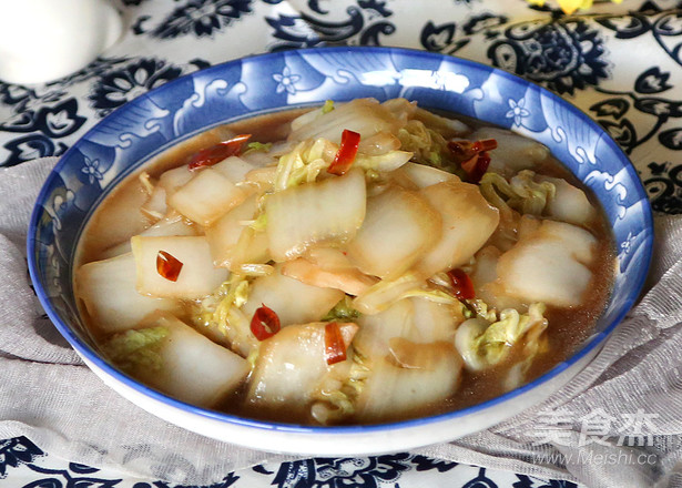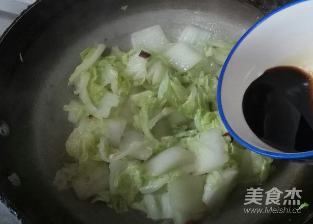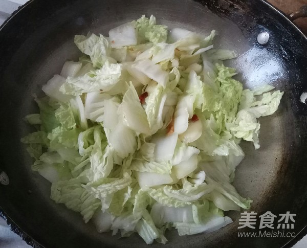 1.將白菜幫斜刀片成薄片,菜葉切段。