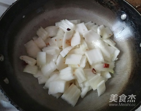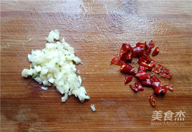 4.鍋中倒入油,待油5成熱時,放入辣椒,蒜爆香。