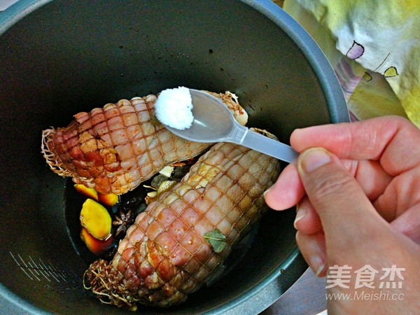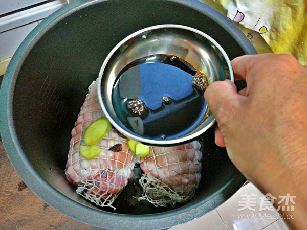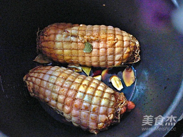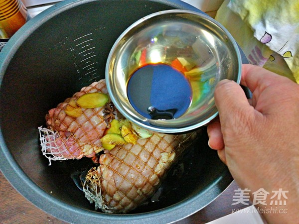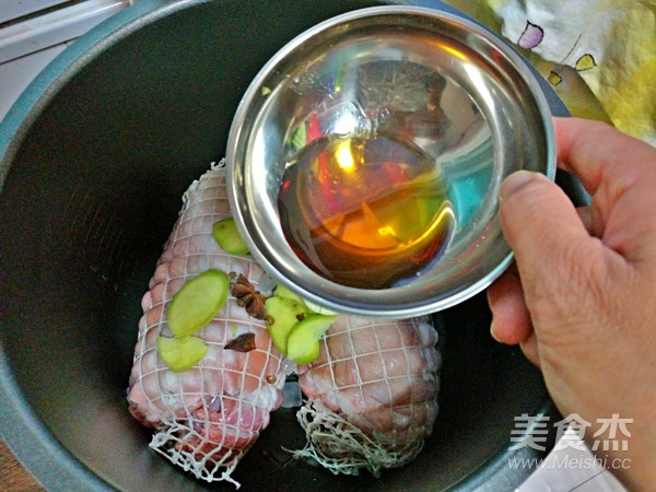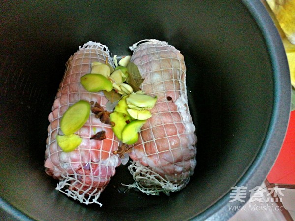3.放入姜、蒜、花椒、八角、冰糖、香葉、桂皮