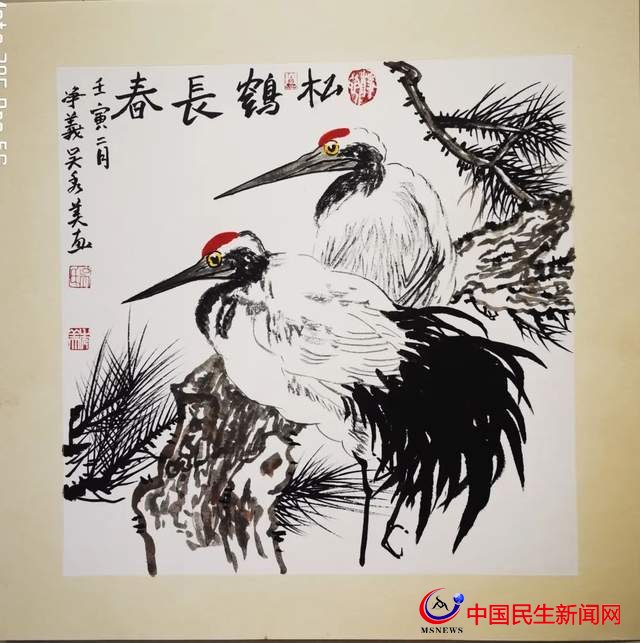 作品:《松鶴長(zhǎng)春》,作者:吳秀美