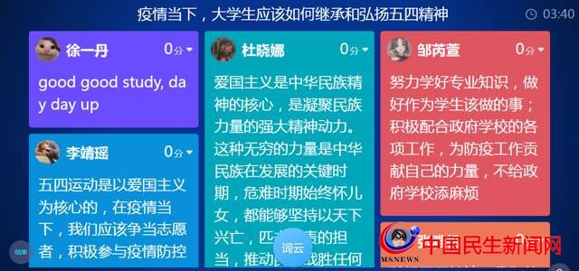 線上教學期間,思政教育也同樣融入了云端課堂,專業(yè)課程融入課程思政,潤物無聲,以愛育人,實現(xiàn)云端價值引領。