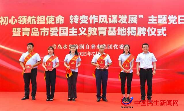 青島快訊 7月1日上午,青島水務(wù)海潤自來水集團(tuán)黨委“初心領(lǐng)航擔(dān)使命、轉(zhuǎn)變作風(fēng)謀發(fā)展”主題黨日暨青島市愛國主義教育基地揭牌儀式在青島水務(wù)黨史教育基地隆重舉行,水務(wù)集團(tuán)黨委書記、董事長夏正啟出席儀式,水務(wù)集團(tuán)黨群工作部、海潤集團(tuán)領(lǐng)導(dǎo)班子成員、受表彰的海潤先鋒崗集體和個(gè)人代表、基層黨組織書記、黨務(wù)工作人員40余人參加活動(dòng)。