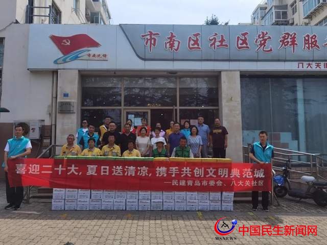 8月18日上午,民建青島市委會在八大關(guān)街道辦事處八大關(guān)社區(qū)開展“喜迎二十大,夏日送清涼,攜手共創(chuàng)文明典范城”慰問活動,為轄區(qū)環(huán)衛(wèi)工人和社區(qū)工作人員送去價(jià)值5000元的礦泉水和解暑飲料。民建青島市委會秘書長曹麗輝、辦公室主任全淵、社會服務(wù)處處長許影、企業(yè)委員會副主任趙靜,八大關(guān)街道辦事處主任王佩佩、八大關(guān)社區(qū)黨委書記張巍峰、八大關(guān)社區(qū)工作站負(fù)責(zé)人張恒銘參加活動。同時(shí),現(xiàn)場還有10余名環(huán)衛(wèi)工和社區(qū)工作人員代表參加了活動。