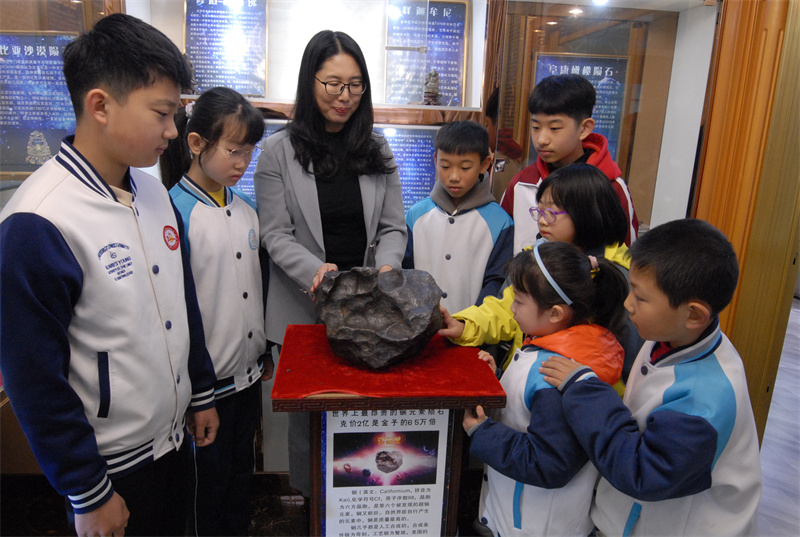 近日,山東省青島市即墨區(qū)首家由市民自己自費(fèi)承辦的隕石科普館開館迎客吸引眾多市民前來參觀。
