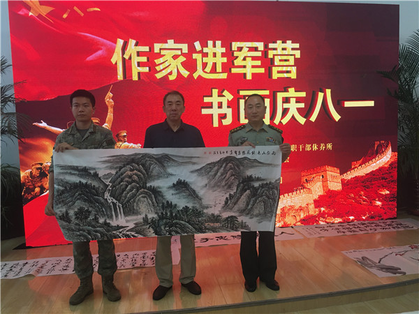 今年是中國人民解放軍建軍96周年,是延安雙擁運動80周年和抗美援朝勝利70周年,也是青島市爭創(chuàng)全國雙擁模范城“十連冠”的迎檢之年。在這樣一個具有重大紀(jì)念意義的節(jié)點,7月26日,市北區(qū)文學(xué)藝術(shù)界聯(lián)合會,市北區(qū)作家協(xié)會組織作家、畫家、書法家走進(jìn)軍營——山東省軍區(qū)青島第十三離職干部休養(yǎng)所,開展“作家進(jìn)軍營•書畫慶八一” 文化擁軍志愿服務(wù)活動。