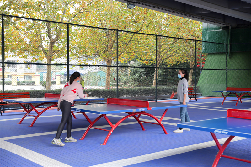 步入其中,自東向西可以看到公園被分為乒乓球區(qū)、老人健身區(qū)、兒童娛樂區(qū)、籃球區(qū)和羽毛球區(qū)五大區(qū)域。其中,老人健身區(qū)設(shè)置了太空漫步機(jī)、平步機(jī)、跑步機(jī)等多種健身器材,可滿足老人多樣化健身需求;兒童娛樂區(qū)設(shè)置了滑梯、秋千、蹦床、迷宮、轉(zhuǎn)盤、蹺蹺板等多種設(shè)施,可謂是兒童的娛樂小天地。公園內(nèi)造形優(yōu)美的運動雕塑,給公園增添了濃郁的文化氣息;塑膠跑道、運動地板等均采用綠色環(huán)保材料,而四周設(shè)置的花壇,更是實現(xiàn)了人車分流,讓群眾安心又放心,實現(xiàn)運動娛樂零負(fù)擔(dān)。