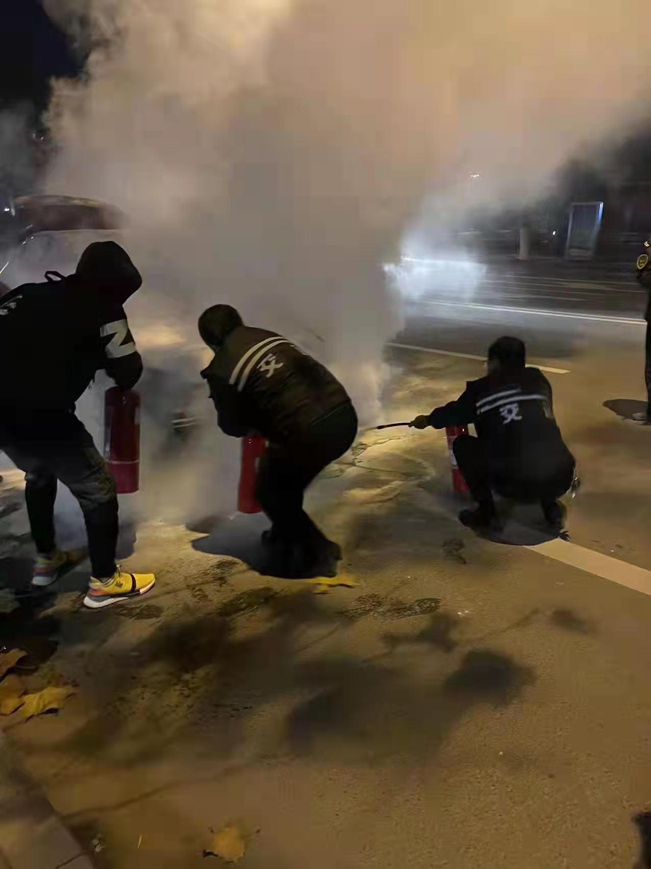 經(jīng)過大家齊心協(xié)力,合力用滅火器壓制住火勢,直至徹底熄滅,眾人顧不得車主感謝,又各自重新回到工作崗位。