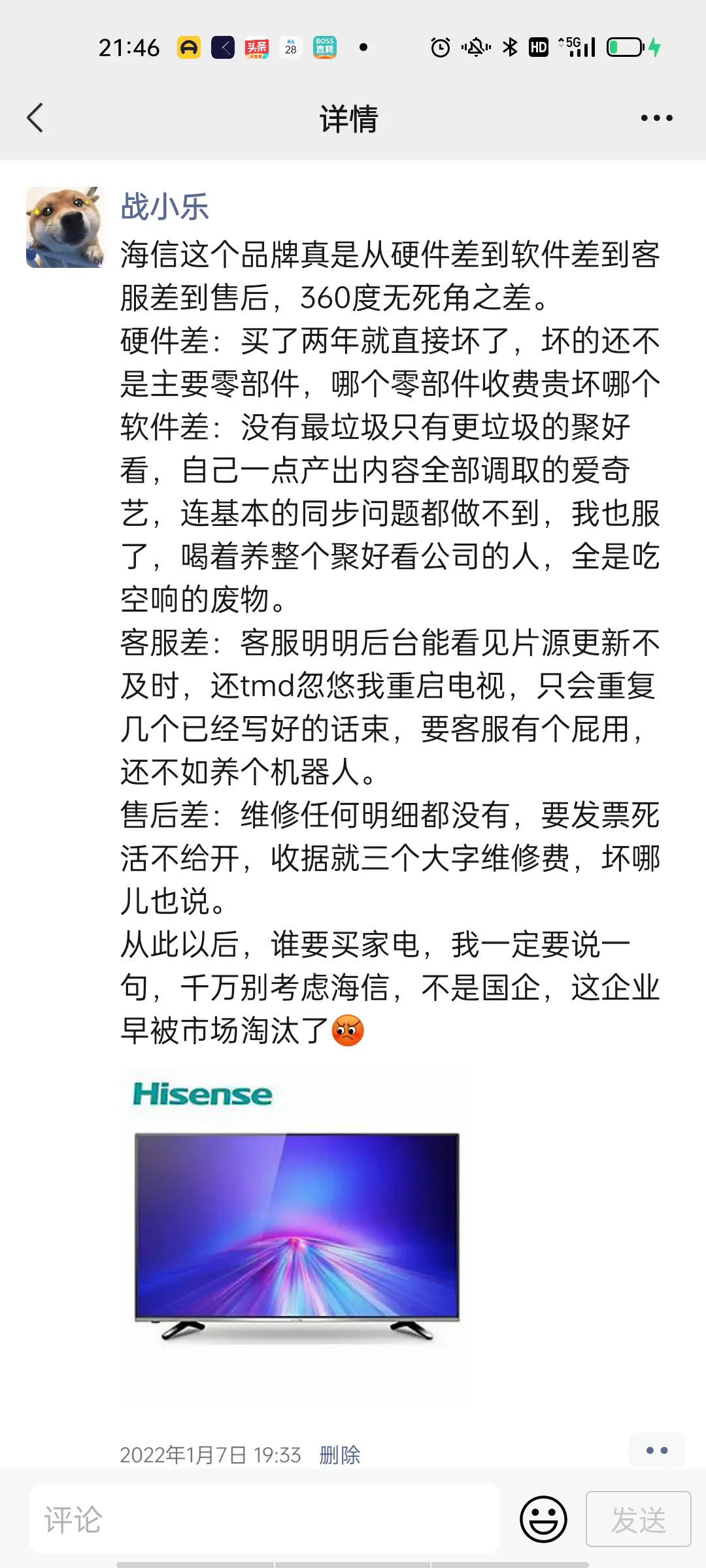 @海信 @海信電視 海信電視買了不到三年壞了硬件壞軟件壞了軟件壞硬件,這次不想修了,反正馬上618了想學(xué)老羅砸個(gè)電視現(xiàn)在征集