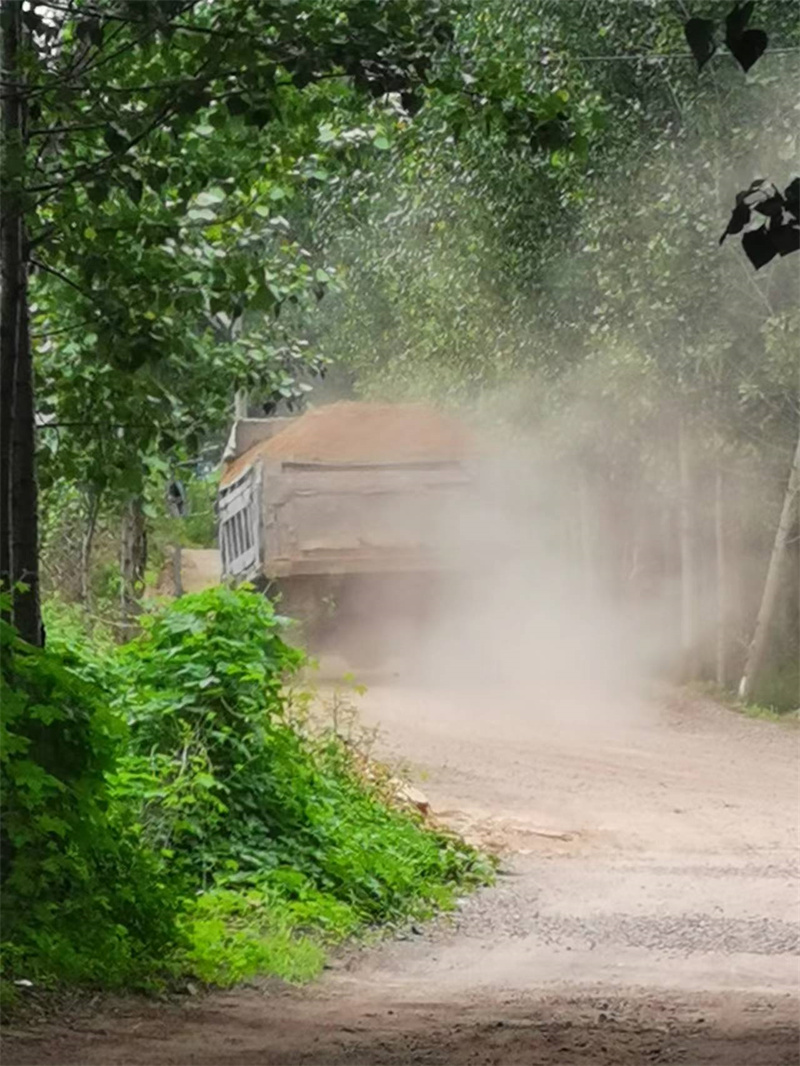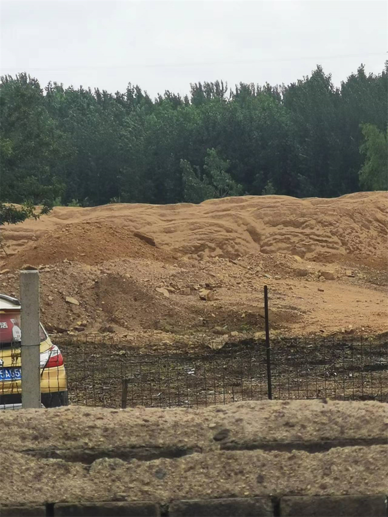 根據舉報人引導的地點,調查員到達現(xiàn)場,來到這處位于小松元村西,緊靠河道,四周圍墻,運送砂石車輛出門后大門接著關閉。院內囤積砂土成山,采挖設備一應俱全,砂土無任何防塵設施,四周全是林木,位置相當隱蔽。