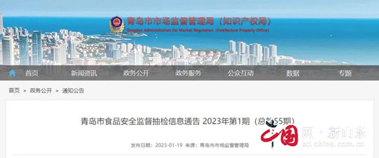 近日,青島市市場(chǎng)監(jiān)督管理局發(fā)布了《青島市食品安全監(jiān)督抽檢信息通告2023年第1期(總第55期)》。
