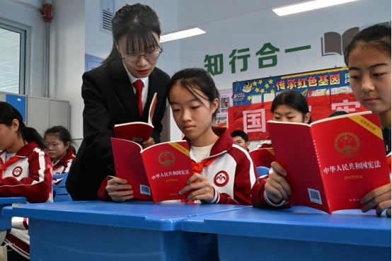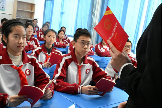 2025年12月4日,是第12個(gè)國(guó)家憲法日。山東省青島市即墨區(qū)人民法院法官走進(jìn)即墨區(qū)新興中學(xué)開展憲法“憲法課堂進(jìn)校園”活動(dòng)。法官通過(guò)誦讀憲法、講解憲法讀本、憲法和國(guó)徽知識(shí)等方式,普及憲法知識(shí),弘揚(yáng)憲法精神,提升學(xué)生學(xué)法、知法、守法意識(shí)。