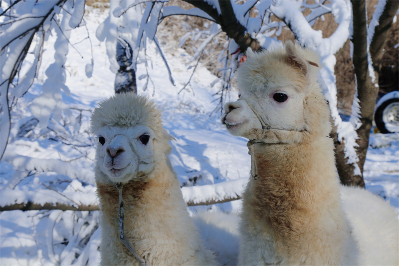 記者來(lái)到青島森林野生動(dòng)物世界,仿佛進(jìn)入了銀裝素裹的雪鄉(xiāng)。樹(shù)上、地上、屋頂上,都處積滿了厚厚的白雪,美輪美奐,漫天漫地,晶瑩剔透,美到令人窒息。在欣賞美麗雪景的同時(shí),與萌寵動(dòng)物來(lái)個(gè)親密接觸!小動(dòng)物們?cè)谘┑乩锶銎鹆藲g,羊駝、小矮馬、孔雀、黑天鵝與小朋友們奔跑、玩耍、嬉戲,營(yíng)造了一個(gè)天真童趣的快樂(lè)童話雪世界。