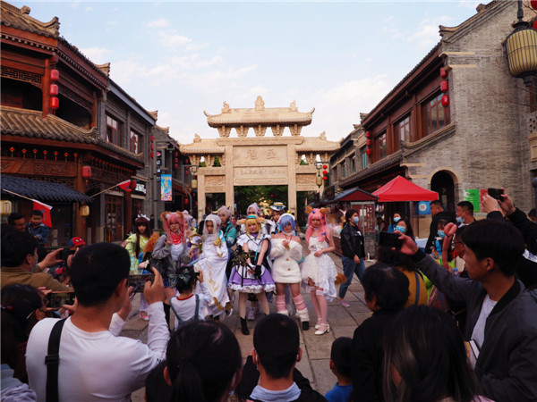今年五一期間,時不時地會在即墨古城看到各種動漫小精靈乍現(xiàn),吸引了一大批漫迷粉絲的目光,成為古城里一道獨特的風景線。今年即墨古城的五一假期是一場充滿動漫元素的狂歡盛會,不僅有呆萌的動漫人偶巡游、炙手可熱的宅舞引爆全場,游客們還可以同coser一起體驗switch體感游戲設(shè)備,做最炫酷的舞蹈體感運動,并體驗免費的Cosplay化妝。
